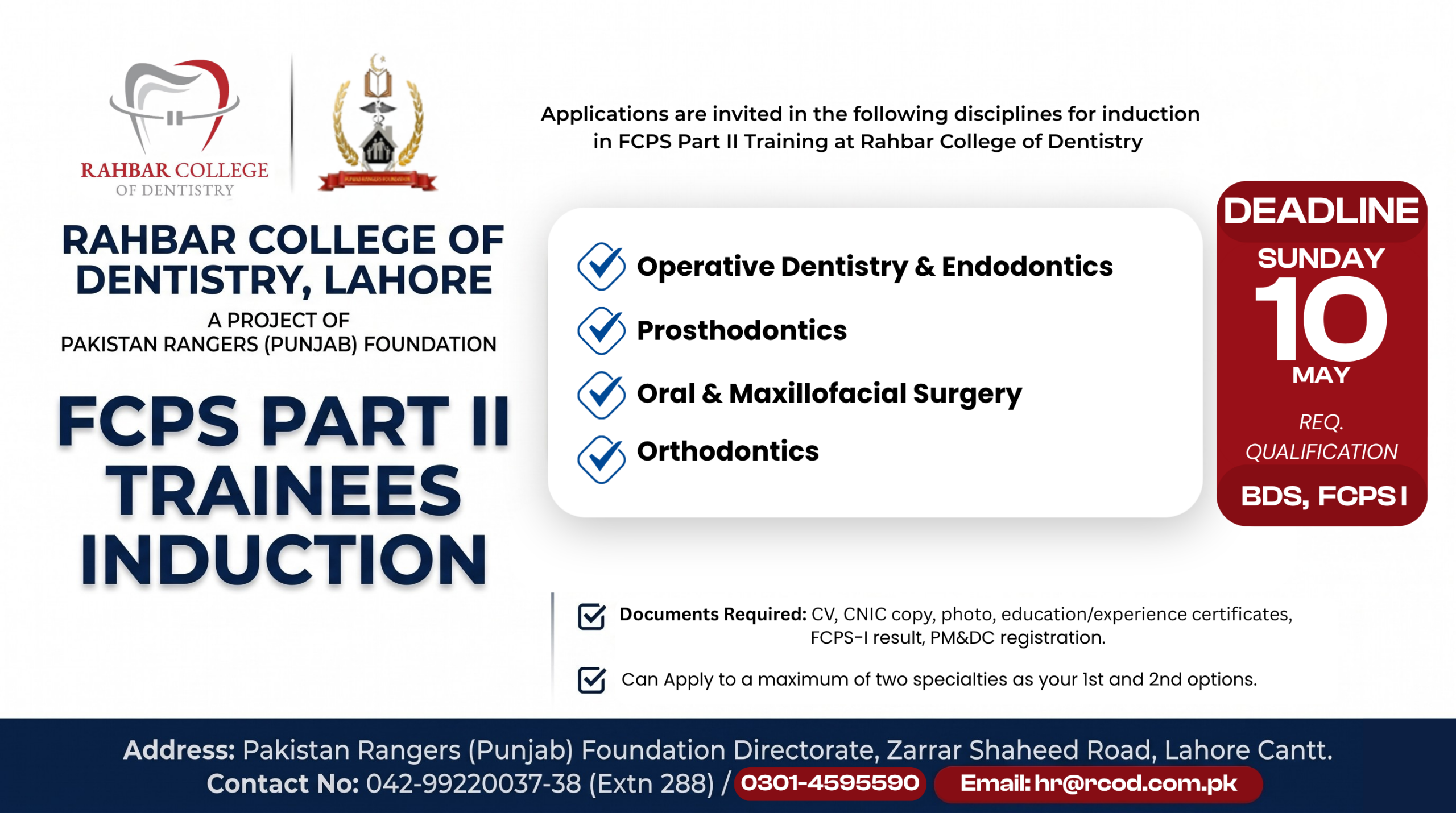 Rahbar college of Dentistry, aims to propel its graduates towards outstanding career opportunities. College authorities provide ample guidance to graduates to choose their professional pathways during undergraduate years. A robust RCoD alumni is also planned to keep the light shining for the followers and provide the larger benefit to the community.