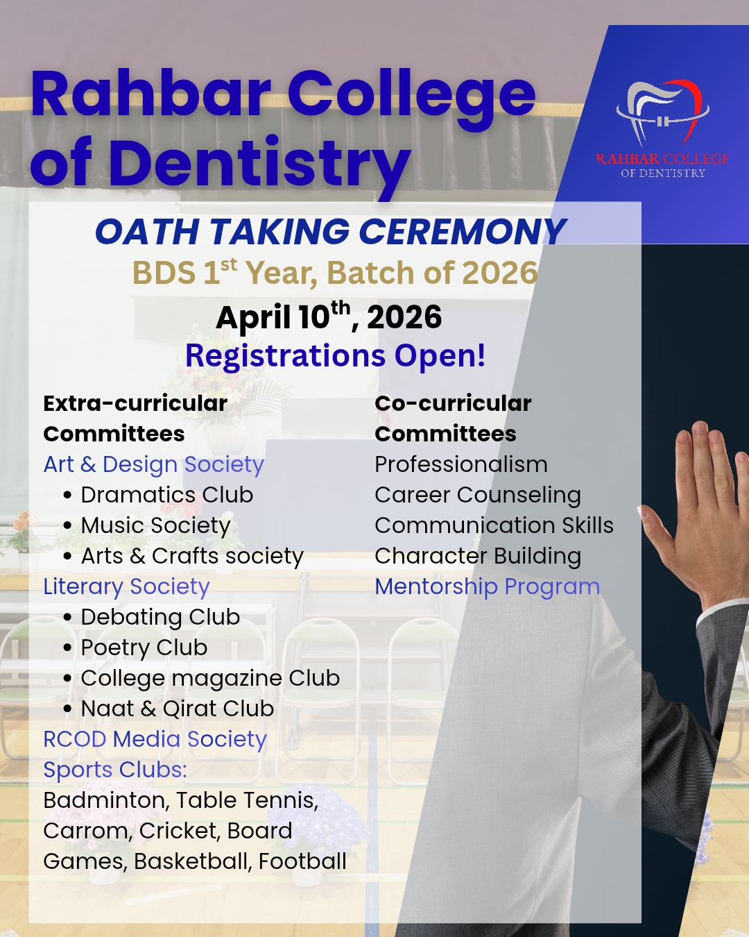 I encourage you to explore our website to discover more about our academic offerings, state-of-the-art clinical facilities, and the vibrant community that makes Rahbar College of Dentistry, a center of dental excellence.